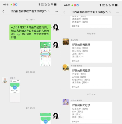 6月23日至29日,由节能办公室组织节能小组成员在绿宝碳汇app上参与全国节能宣传周“云”竞答活动。此次活动秉承着“节能增效,焕‘新’引领”的主旨,在于普及垃圾分类知识,提升学校老师的节能环保意识和资源意识。
