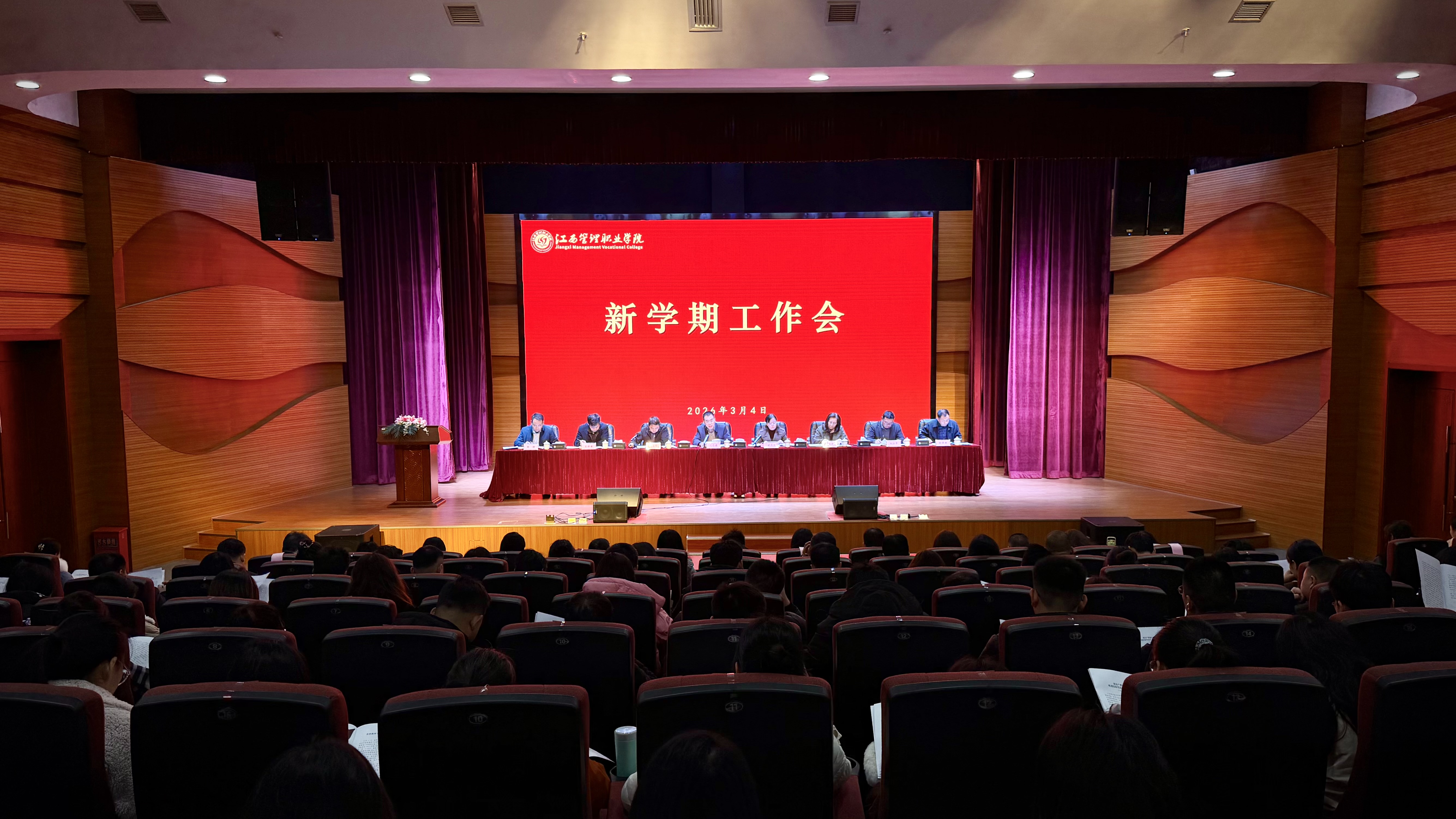 3月4日,学校召开2026年新学期工作会议。党委书记左志德出席并讲话,党委副书记、校长苏兰宜总结2025年工作并部署2026年重点任务,党委副书记刘立坚主持会议,校领导刘秋波、吴群峰、刘江华、熊博、徐国洪出席会议,全体中层干部、各教研室主任及教师代表180余人参会。