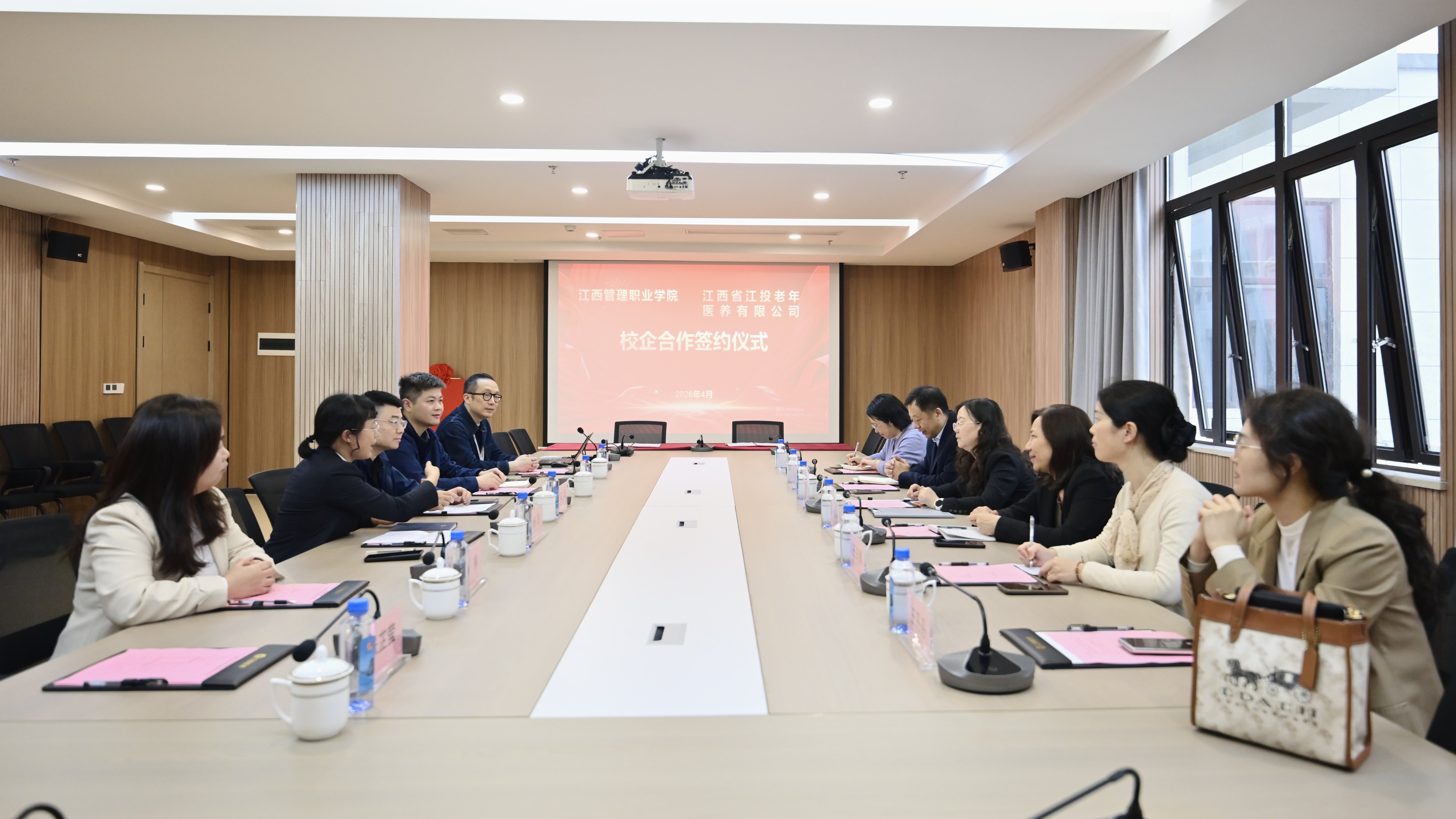 4月14日,学校与江投老年医养有限公司校企合作签约仪式在江投康复医院举行。学校党委副书记、校长苏兰宜,副校长刘秋波,党委委员、副校长徐国洪,江投老年医养有限公司董事长马勇,副总经理杨贤,总经理助理胡潇荷及双方相关职能部门负责人共同出席仪式。