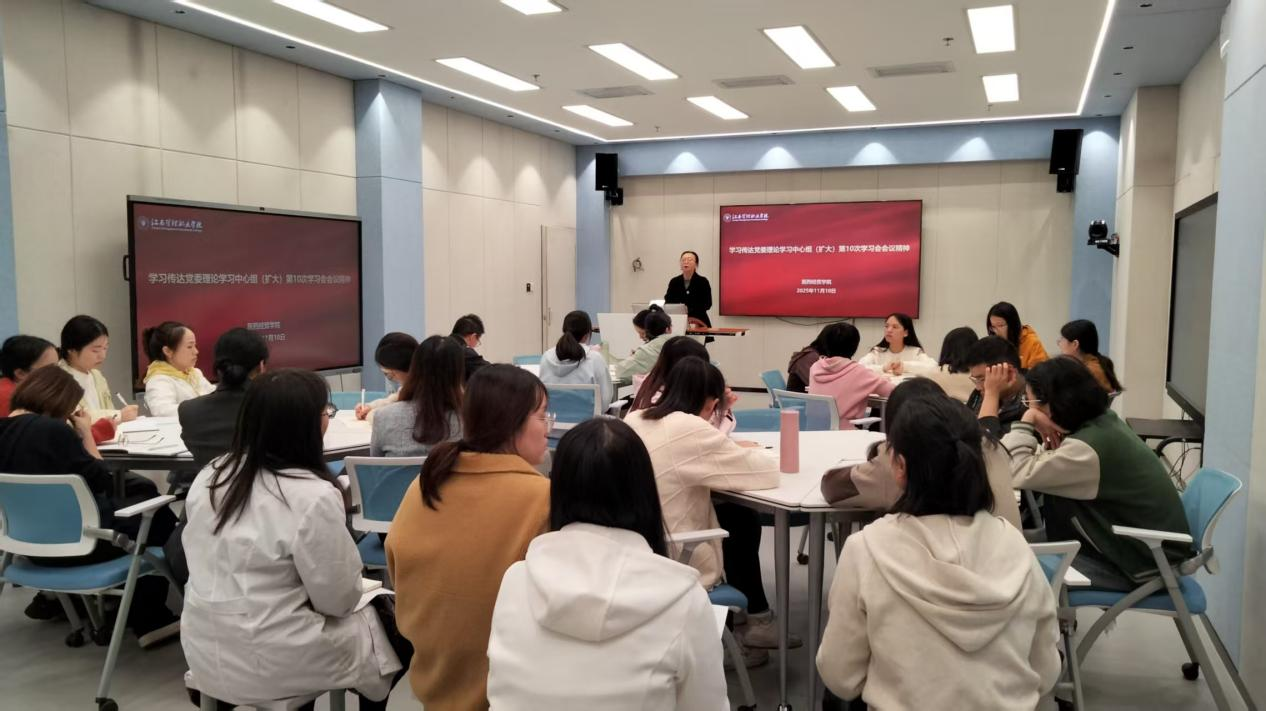 2025年11月10日,医药经贸学院召开全体教师大会,专题学习传达学校党委理论学习中心组(扩大)第10次学习会会议精神。本次会议由学院党支部书记万欢主持。会上,万欢领学《习近平谈治国理政》第五卷“进一步全面深化改革”专题,号召与会教师牢记“为党育人、为国育才”初心使命,落实立德树人根本任务。她传达学校党委理论学习中心组(扩大)第10次学习会会议精神。她结合工作实际,解读学校党委书记左志德在会议上的讲话内容...