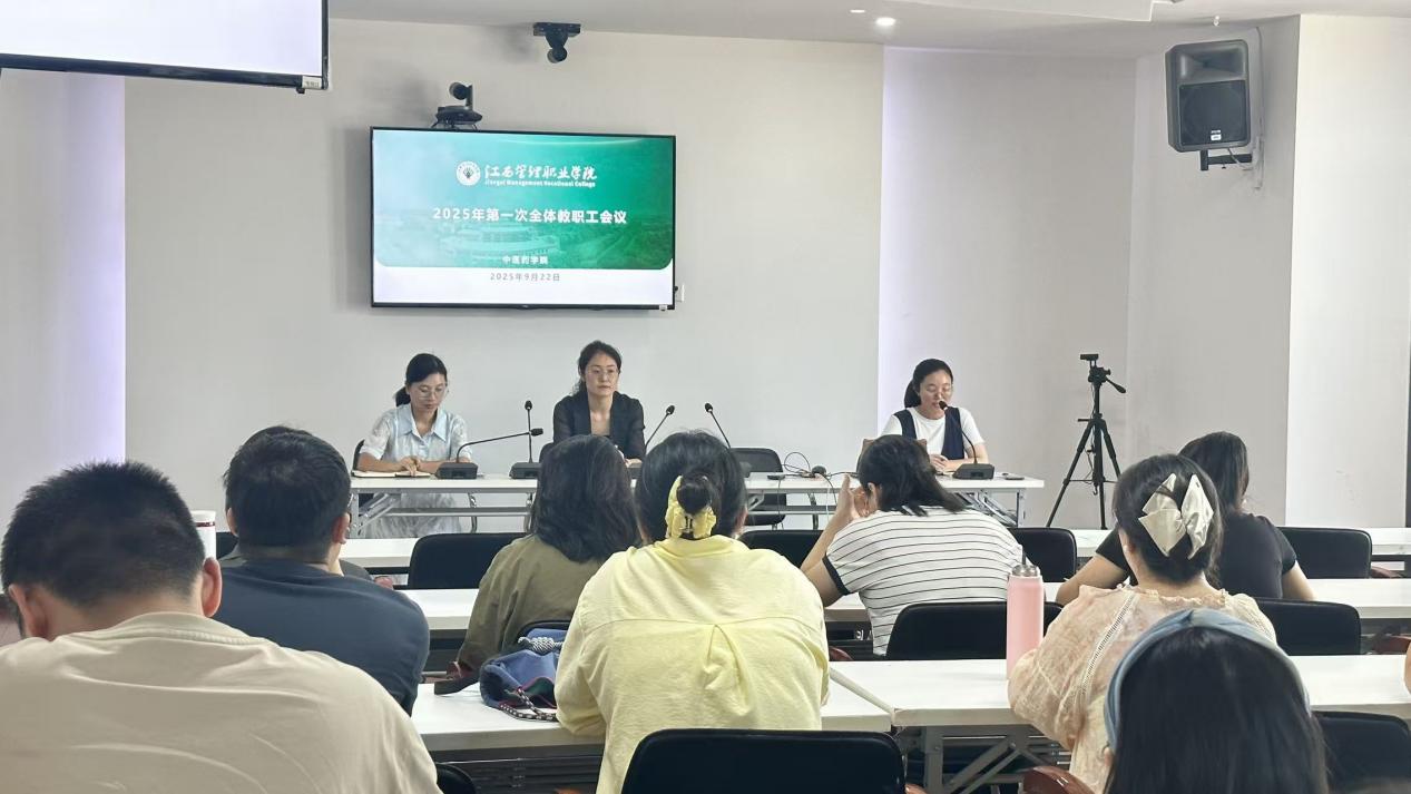 9月22日13时,中医药学院在综合楼7楼召开新学期首次全体教职工会议。会议由学院刘燕老师主持,学院党总支书记王丹丹、党总支副书记谢妍龙以及全院50余名教职工参会。 首先,刘燕老师简单介绍了本次会议的流程。而后王丹丹书记指出中医药学院将立足服务健康中国战略,以传承创新中医药文化为核心,深化产教融合,打造特色专业群。她提出三个聚焦:聚焦人才培养质量提升、聚焦科研服务地方经济、聚焦党建与业务双融双促。谢妍龙副书记希望,全体教职工,在新的历史起点,要提高政治站位,推动党建与业务深度融合,群策群力完成好学院的各项工作。 与会教职工纷纷表示,将以此次会议为契机,发扬团结协作精神,共同推动学院高质量发展。会议在热烈的掌声中圆满结束。