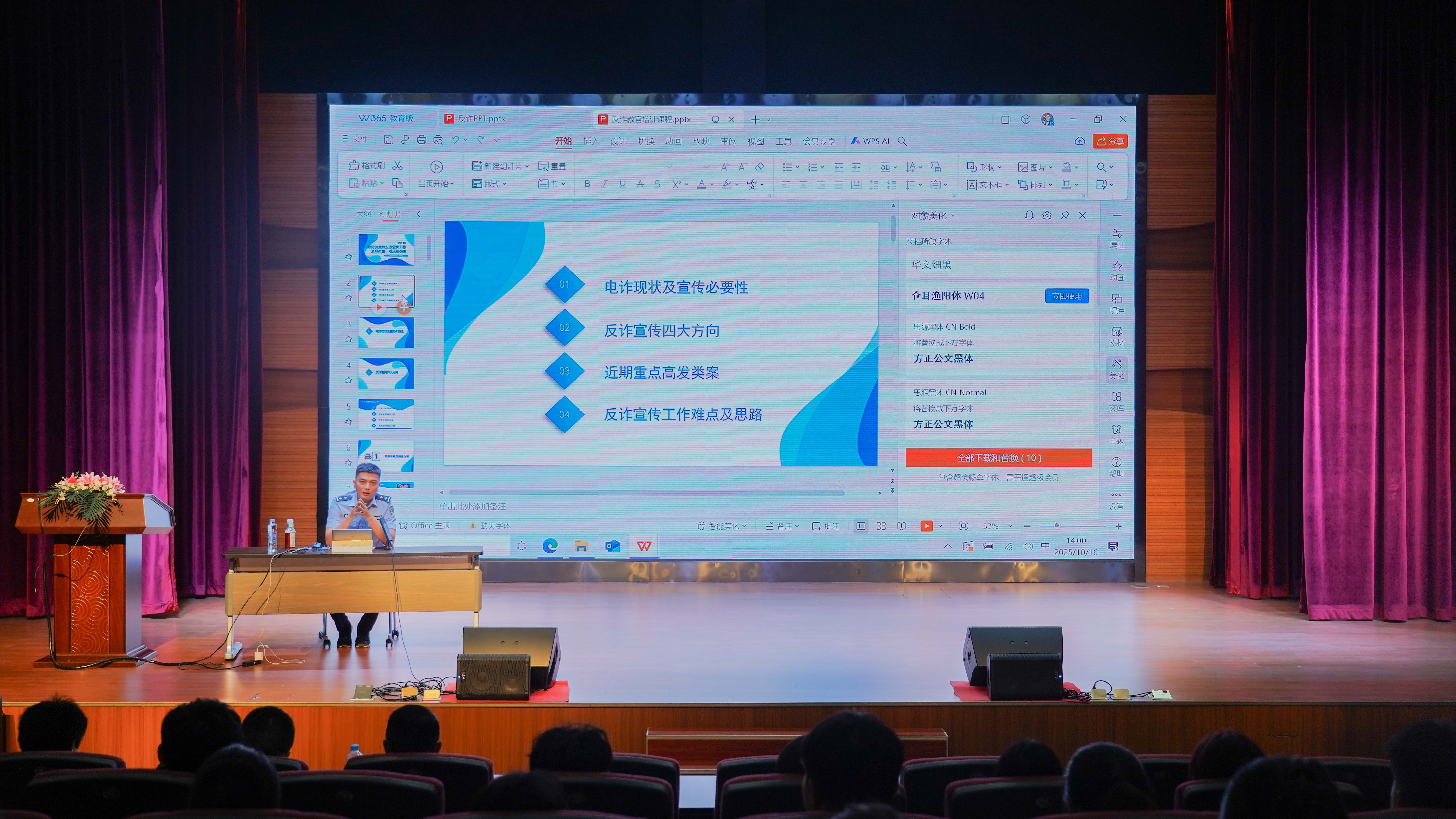 为深入推进“平安校园”建设,全面提升师生防范电信网络诈骗的意识和能力,2025年10月16日,我校特邀请南昌县公安局反诈工作专班万警官来校,为全体辅导员、班主任及各班级安全委员带来一场生动而深刻的反诈专题培训。