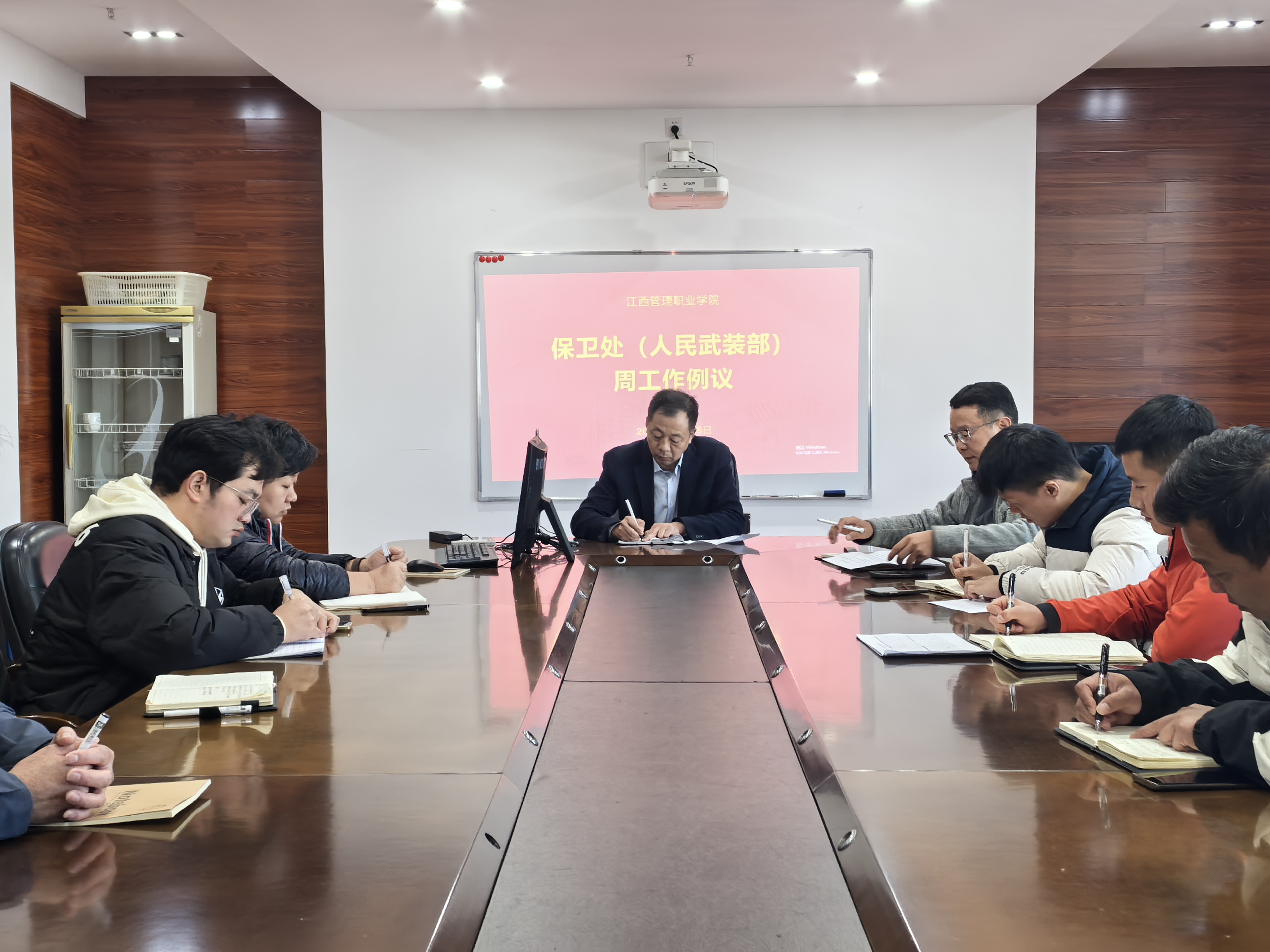 11月19日中午,我校保卫处在综合楼六楼会议室召开部门周工作例会,专题研究近期校园安全重点工作。校党委委员、副校长徐国洪出席会议并讲话,保卫处处长余执坚主持会议,副处长曾源、李俊以及保卫处全体工作人员、物业经理参加了会议。