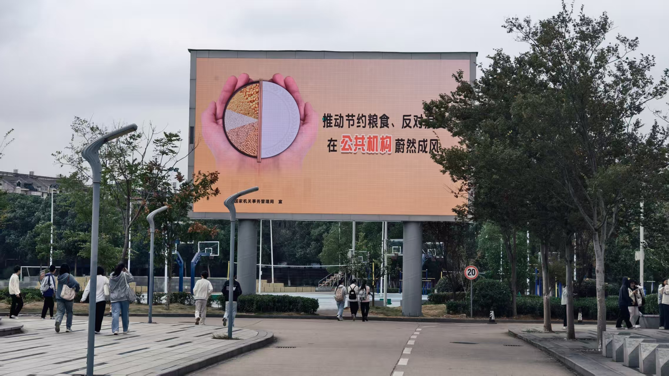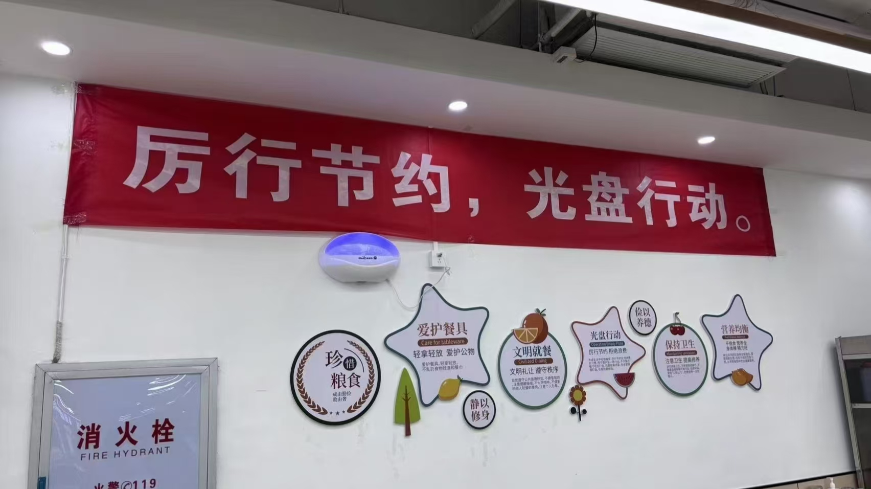 活动期间,学校在食堂、综合楼及各主要户外区域悬挂张贴了以“节约粮食”为主题的宣传条幅与海报,并通过学校电子显示屏循环播放节约粮食倡议,提醒全校师生关注粮食问题,共同参与到节约粮食的行动中来。