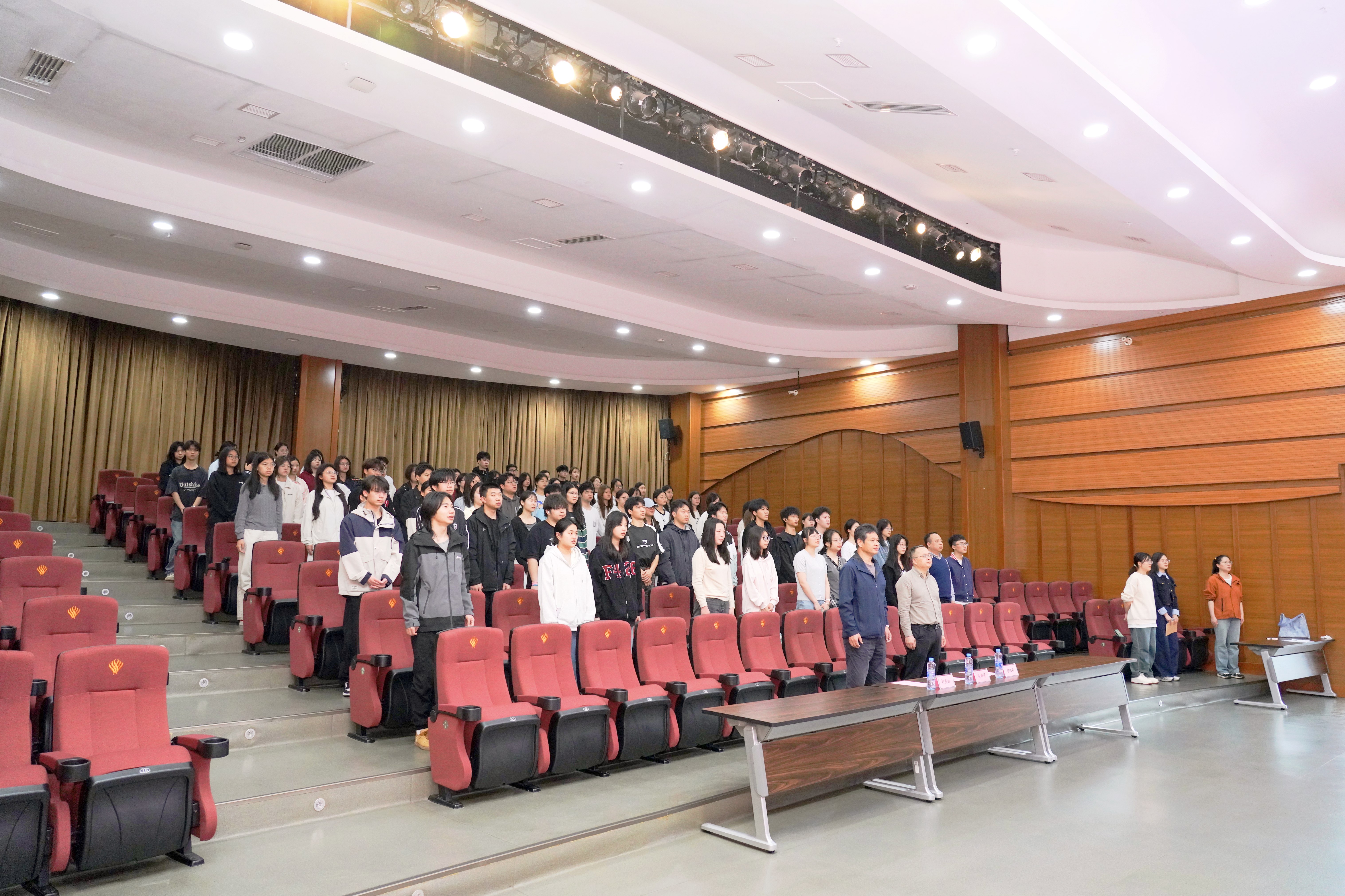 随后,全体人员同步观摩校本部典礼直播,依次参与了奏唱国歌、校领导讲话、师生发言、药学生宣誓、校徽授予、奏唱校歌等环节,并聆听了高艳玲老师主讲的《心向阳光,压力调适与心理健康》开学第一课,帮助学生调适心态、明确目标。