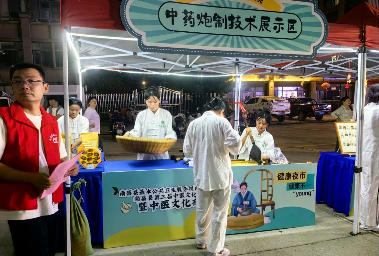10月17-18日,南昌县基本公共卫生服务项目15周年宣传暨第三届中医药文化日活动在银三角街道万湖夜市成功举办。活动由南昌县人民政府指导,南昌县卫生健康委员会、银三角街道办联合主办,南昌县医疗健康集团、南昌县中医院、银三角街道社区卫生服务中心、万湖村民委员会、江西管理职业学院(江西省医药技师学院)承办。此次活动既是南昌县基本公共卫生服务项目15周年的重要宣传载体,更是以“夜市”这一亲民形式,让中医药文化“活”起来、“热”起来的创新实践。
