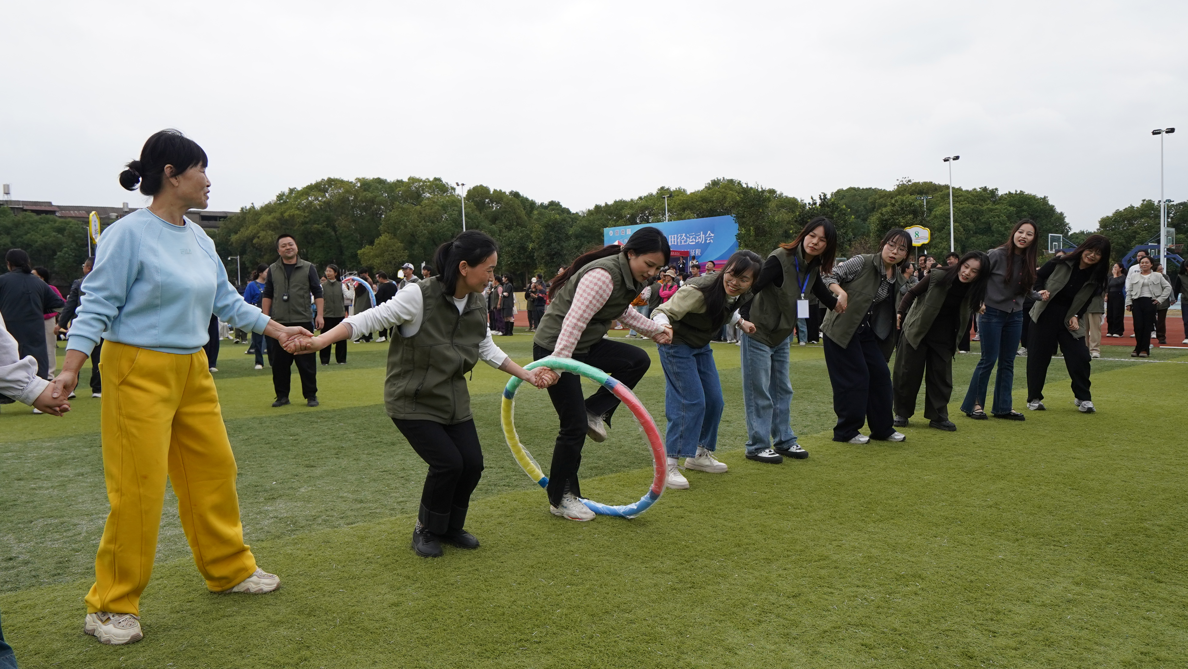 下午2时许,场边涌起阵阵欢笑的浪潮,气氛热烈非凡,平日严谨授课的老师走下讲台,全身心投入比赛,互相鼓励、默契配合。