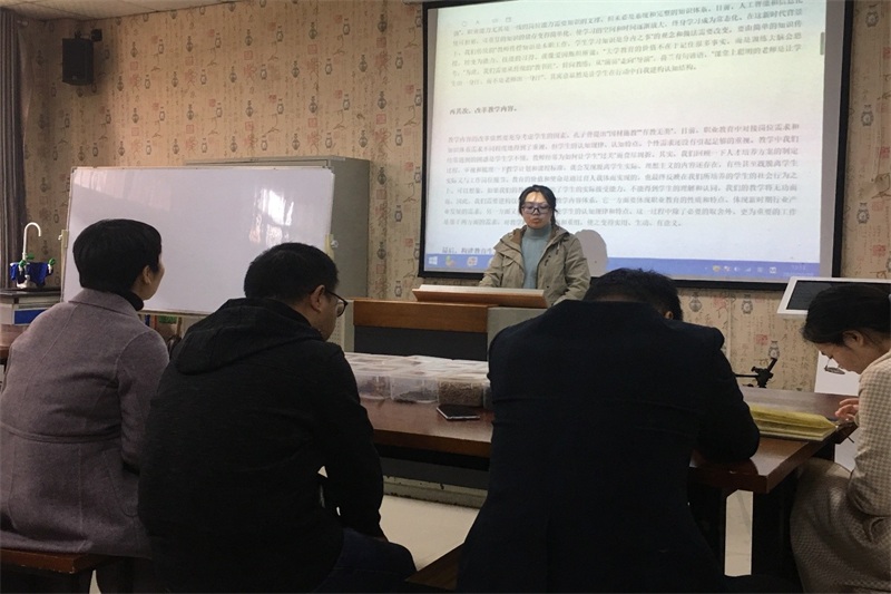 教学方法是教师与学生桥梁和纽带,合适的教学方法能够充分发挥学生主体作用,调动学生学习的主动性、积极性,对于启发学生的创新思维,起着至关重要的作 用。本次教研活动以培养学生创新素质,促进学生的全面发展为宗旨,讨论创新“以学生为中心”的教学模式。本次活动首先由主持人通过一段视频“课程设计—混 合式教学的特点:以学生为中心的教育学”让在场老师感受e时代的教与学的魅力,适当的混合式教学模式,能够提高学生的学习兴趣和学习投入,提升课程的挑战 度,进而有助于提高教学质量,取得更佳的教学效果。教育事业意义重大且富于创造性,紧接着一段“林毓锜:教师主导下的以学生发展为中心的教学观”视频体会 创造性教学的重大意义,参会教师李海龙老师表示在教学实践中,注重发挥教师的主导和学生的主体作用,在教学实践中充分发挥了学生的主动积极性,并将在后期 的教学中继续践行“以学生为中心”的教学理念,提升教学质量。