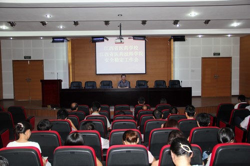 2012年9月1日13:30,我校在多功能报告厅召开全校安全稳定工作会议。校长阳欢、副书记石磊、副校长林勇、副校长苏兰宜及全体在职在编、人事代理和班主任参加了此次会议。