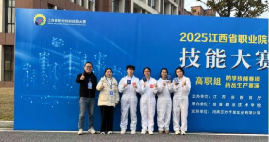 近日,江西省职业院校技能大赛高职组“药品生产”赛项在宜春职业技术学院圆满收官。我院学子表现亮眼,由吴欣怡、陈可馨、陈佳豪、胡邦帅四位同学组成的团队,在姚金龙、赵美连老师的指导下,斩获第二名佳绩!荣获团体二等奖;吴芳、王宁杰、陈思、饶文琪四位同学在袁建华、许小珍老师的指导下,荣获三等奖。