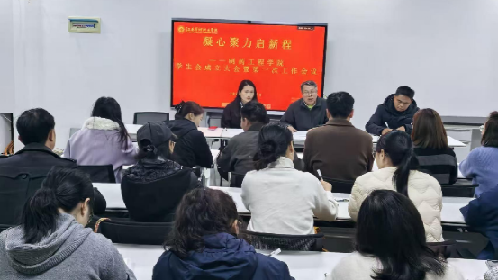 为加强学生组织建设,提升学生自我管理、自我服务能力,3月17日下午,制药工程学院在学院会议室隆重召开学生会成立大会暨第一次工作会议。学院党支部书记陈小军、院长江丽芸、副院长万华根、全体辅导员及学生会全体成员参加会议。
