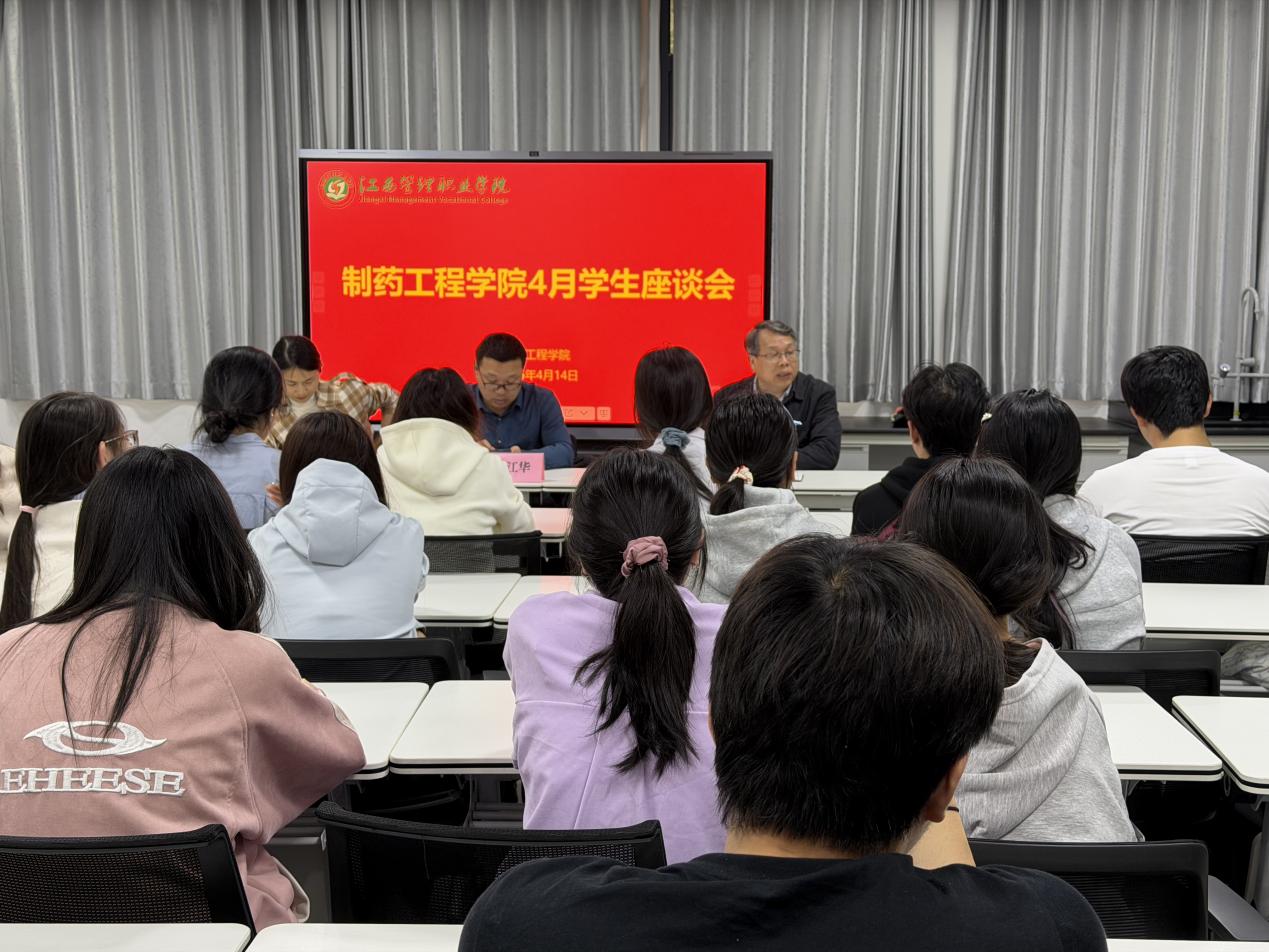 为深入了解学生思想动态,推动高职育人工作走深走实,4月14日下午,制药工程学院召开学生座谈会,校党委委员、副校长刘江华,制药工程学院院长江丽芸、党支部书记陈小军、教务处副处长徐晨阳、学院学工干事程瑶及各班两名学生代表参加。