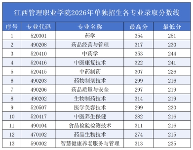 根据江西省教育厅《关于做好全省2026年高等职业教育单独招生考试工作的通知》(赣教考字〔2025〕24号)及《江西管理职业学院2026年单独招生简章》规定,现将我校2026年高职单招预录取名单公告如下: